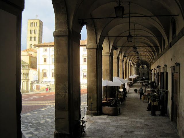 This is the main square of the city.  Famous for its role as a backdrop of the film "La vita é bella", a very popular Italian drama comedy which won several Academy Awards in 1997.  The movie cost $20 million to produce and grossed $230 million worldwide at the box office.  Holy cow, Batman!  What do you even do with that kind of money?!
